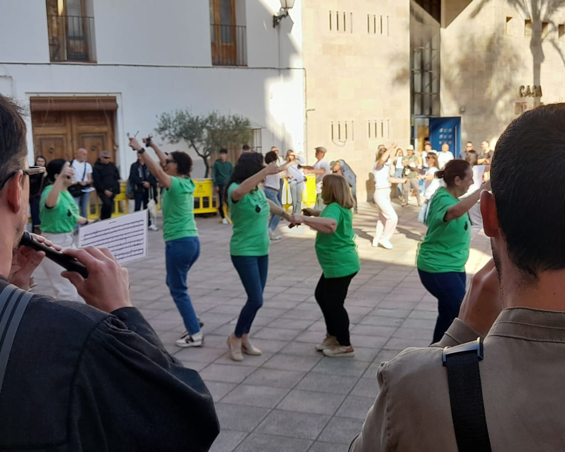 Tres grups de danses van ballar a la plaça de l’Ajuntament i es va llegir el manifest per part de Ximo Vidal.