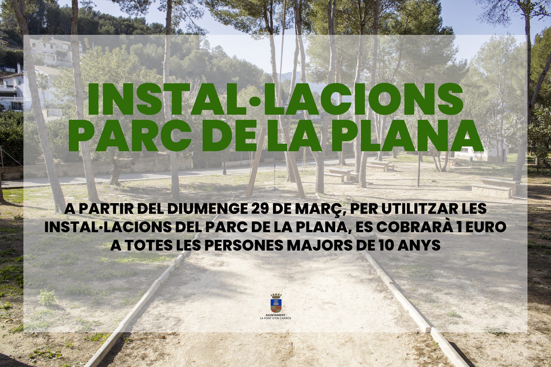 A partir de demà diumenge 29 de març, per poder fer ús de les instal·lacions del parc, es cobrarà 1 euro per persona a totes les persones majors de 10 anys.