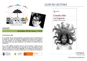 En aquesta ocasió es comentarà les impressions del llibre ‘Las hogueras’ de Concha Alós.