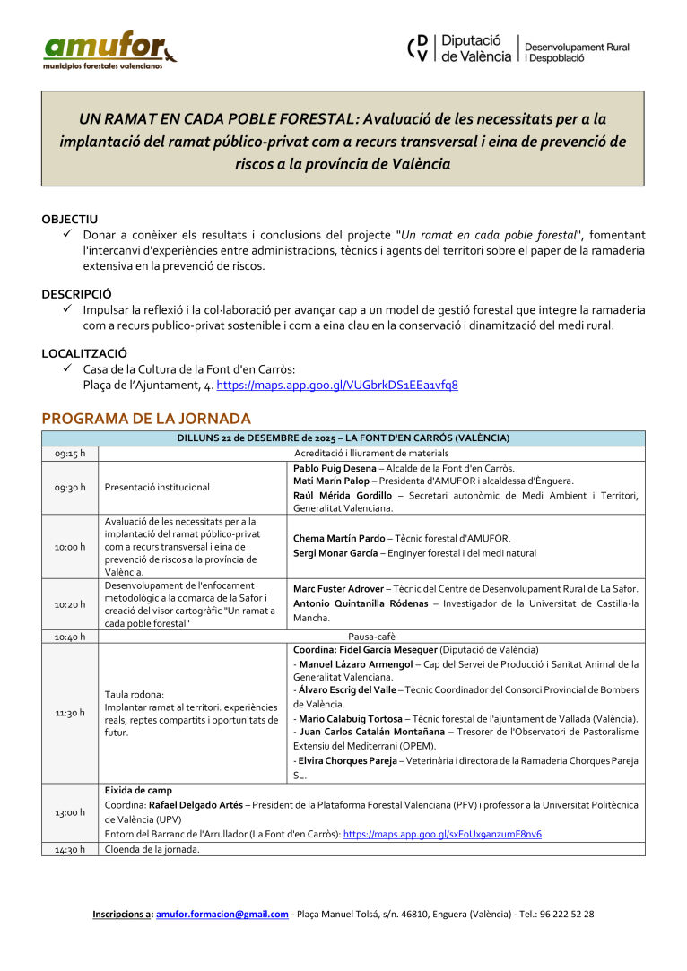 Un ramat en cada poble forestal: Avaluació de les necessitats per a la implantació del ramat público-privat com a recurs transversal i eina de prevenció de riscos a les comarques de València.
