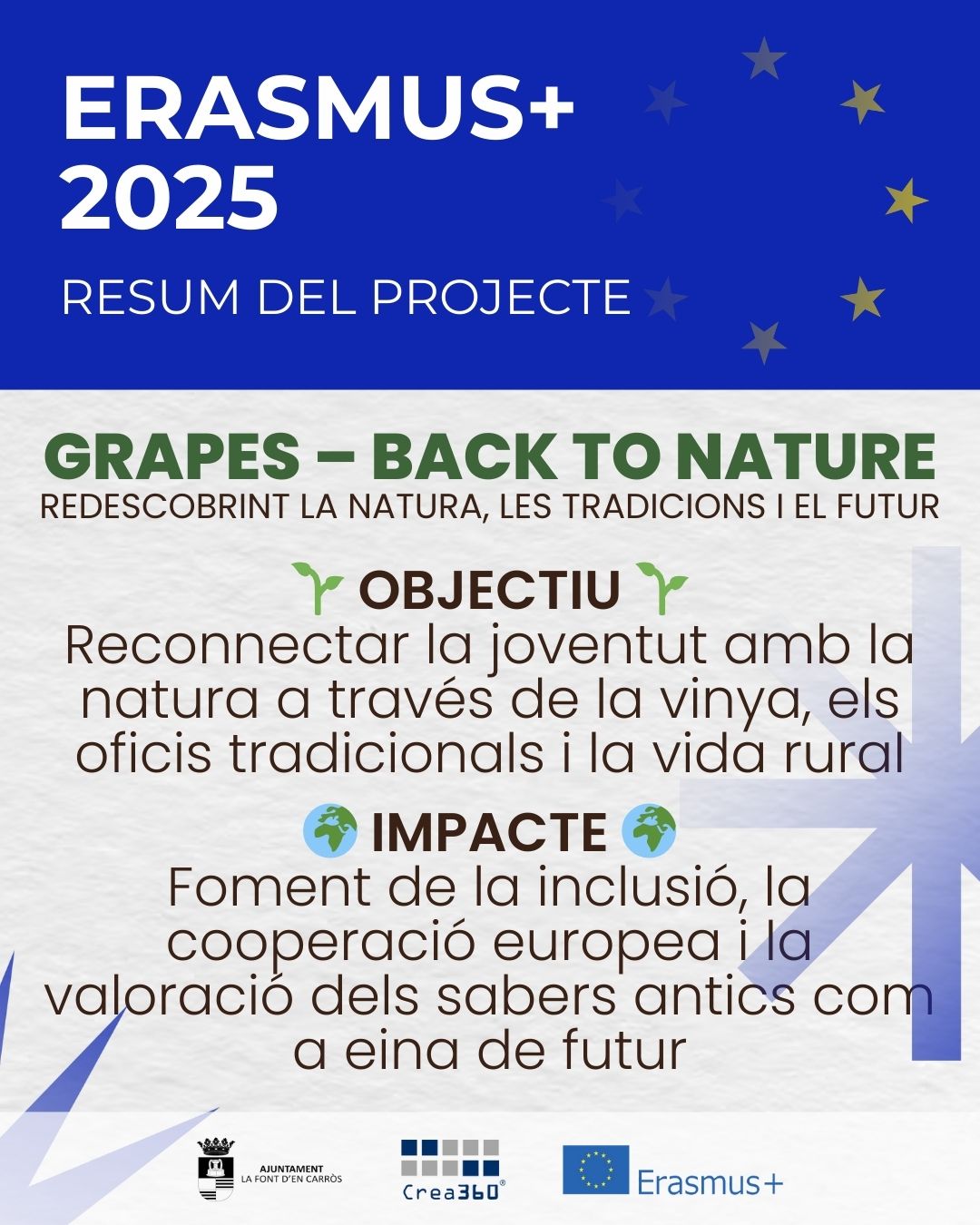 Participa en el projecte Erasmus+ “Grapes – Back to Nature” i uneix-te a altres joves europeus per redescobrir la natura, les tradicions rurals i els valors sostenibles.
