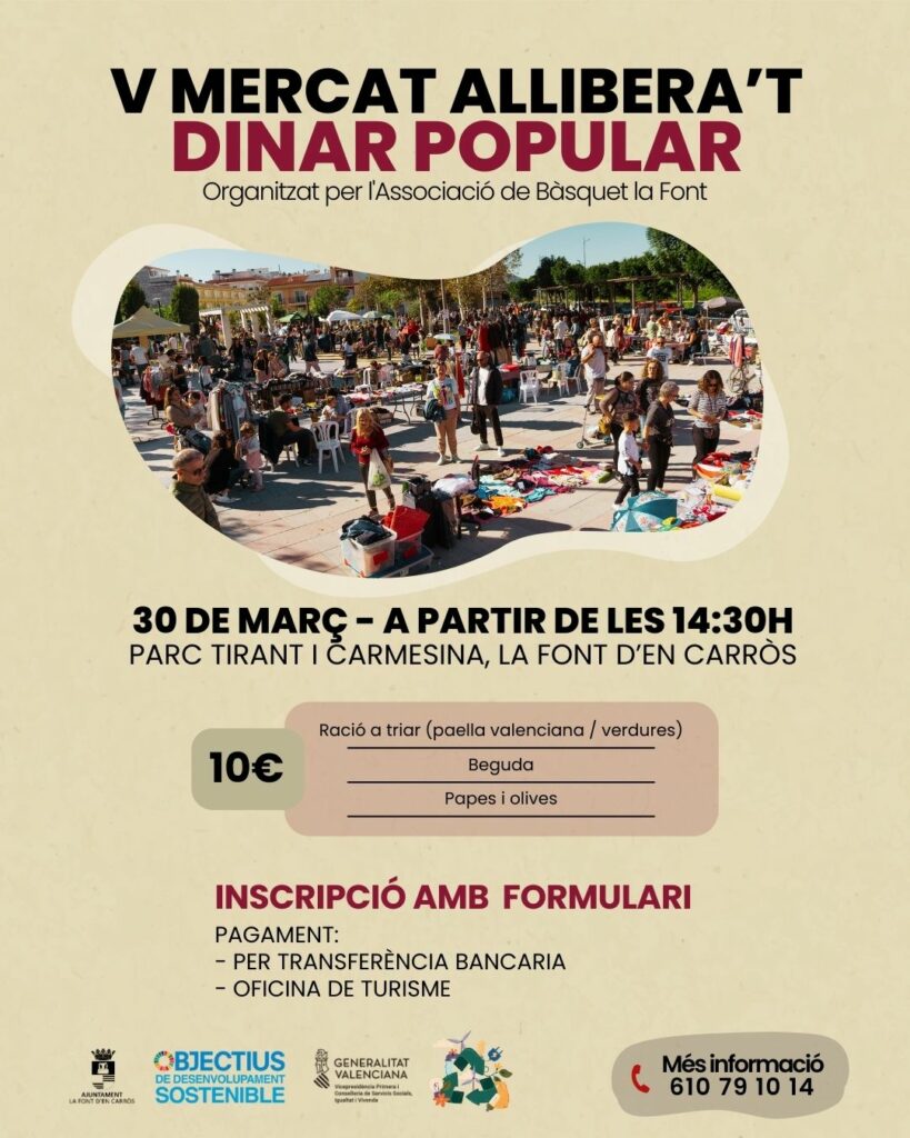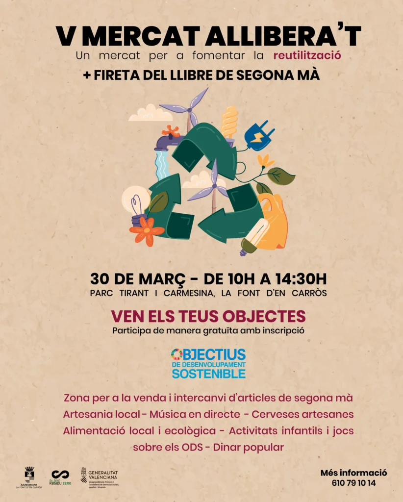 🔊Des de l’ Ajuntament de la Font d’en Carròs, a través de la campanya La Font Residu Zero, estem contents de tornar a obrir els terminis d’inscripció per a participar en la quinta edició del Mercat Allibera’t.